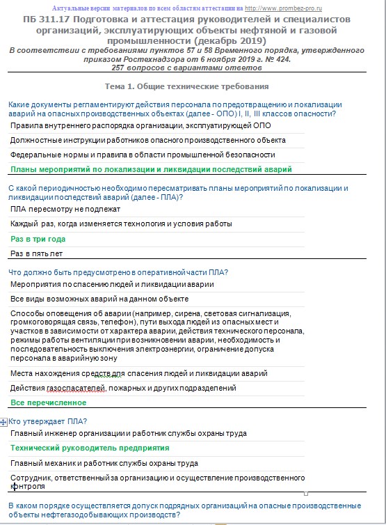 Вопросы с ответами к курсам ОКС-Олимп Б.2.1 ПБ 311.17 (декабрь 2019) Подготовка и аттестация руководителей и специалистов организаций, эксплуатирующих объекты нефтяной и газовой промышленности