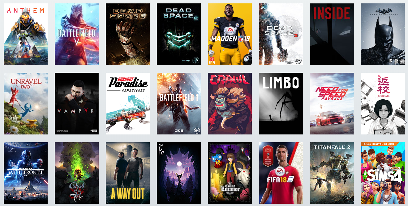 В подписку входят такие хиты как Battlefield 5, anthem, NFS payback, A WAY OUT и многие другие;